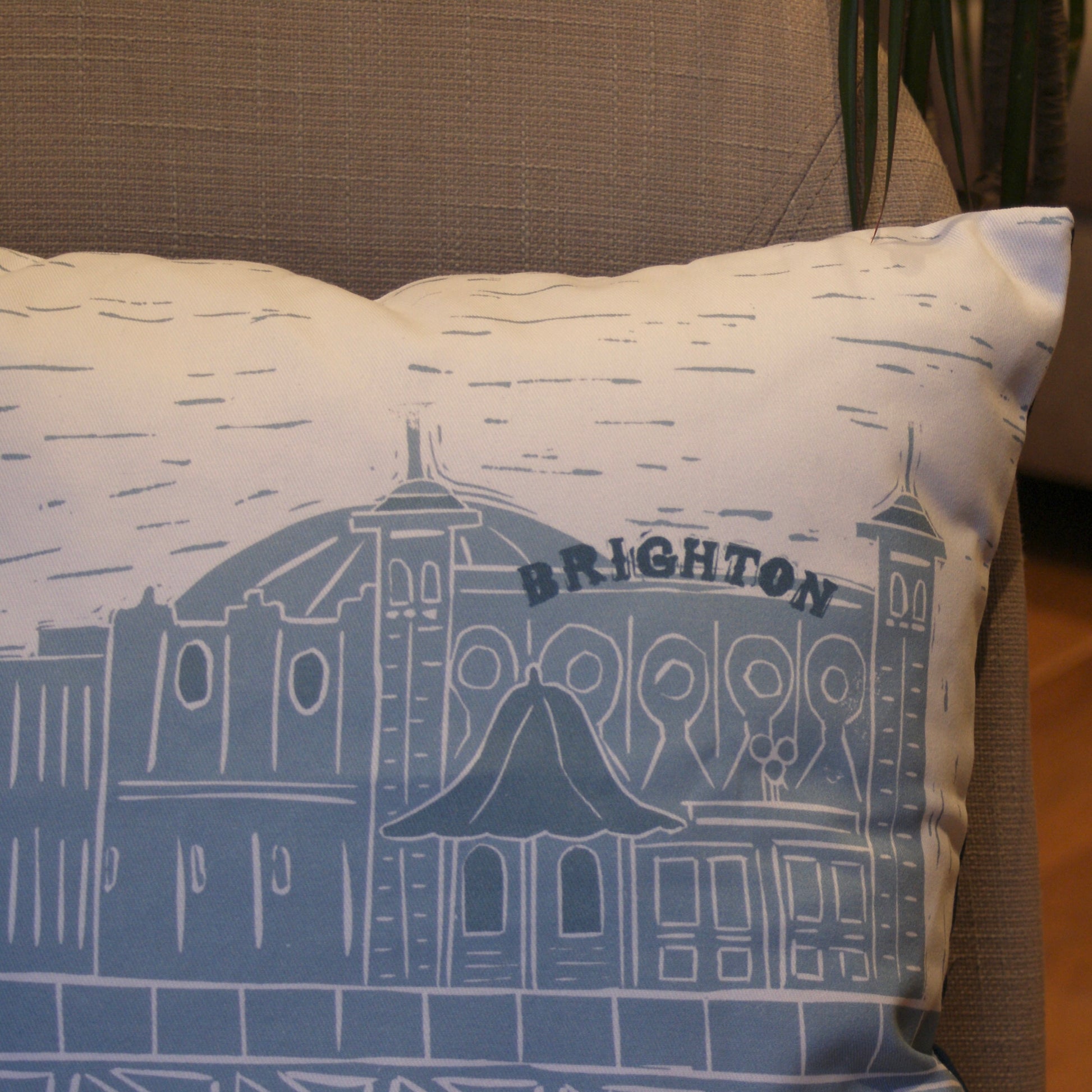 Created from an original lino cut design, which has been scanned in and digitally printed on to lovely organic cotton drill fabric. The perfect gift for someone who holds Brighton close to their heart.
