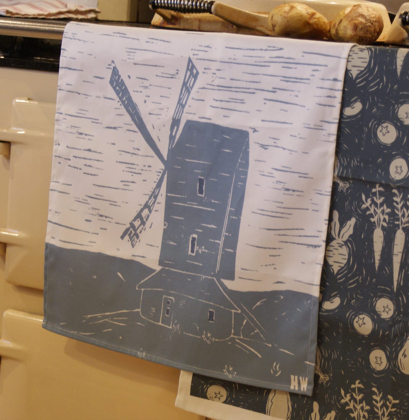 This lino print shows the windmill in Brill, Buckinghamshire, somewhere very special to me. The Brill Windmill is a renowned landscape and perfect for lino! In a calming blue tone this tea towel will sit in harmony with any kitchen colour scheme. An easy present to pop in the post to bring a smile to someones face!