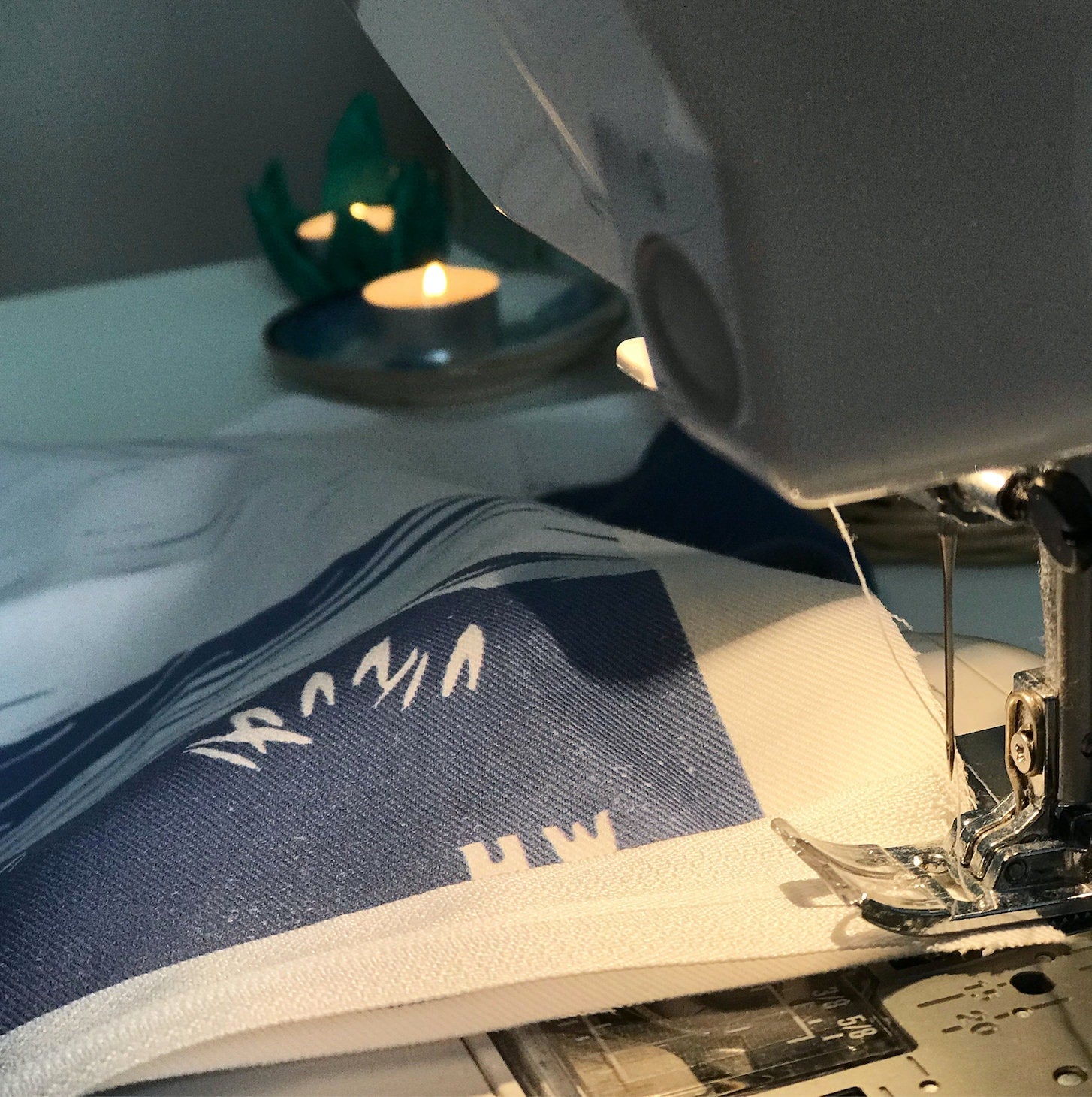 Composition: Digitally printed cotton drill with navy blue backing fabric. Printed and made in the UK.