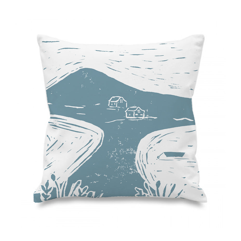 My cushion cover are designed to remind people of happy memories. I have visited the Scillies every summer since I was born and my work is hugely inspired by the Islands! This design is developed from sketches of Gugh on the Isles Of Scilly. Gugh could be described as the sixth inhabited island on the islands as it is only accessible from St Agnes at low tide! This bold lino-print creates a fab statement cushion and a great Cornish present.