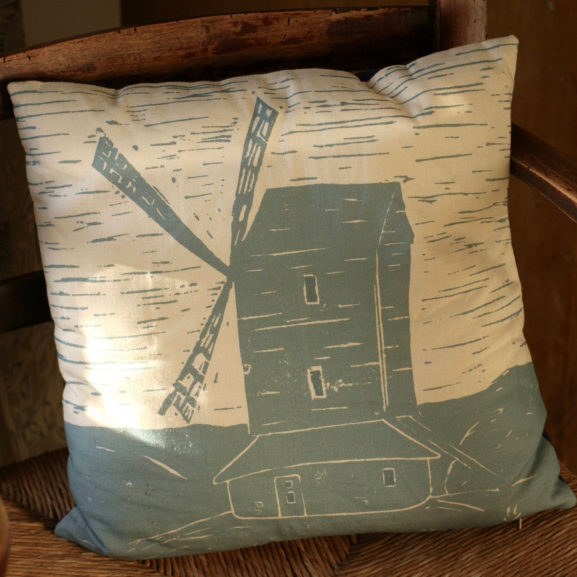 My lino printed cushions draw inspiration from nostalgic scenes, mainly from Cornwall and the Isles of Scilly. This print is of Brill Windmill in Buckinghamshire, but has ben bought by many Windmill fans! Perfect to add interest to your sofa, and remind you of special memories. These cushions come ready to gift with a filler.